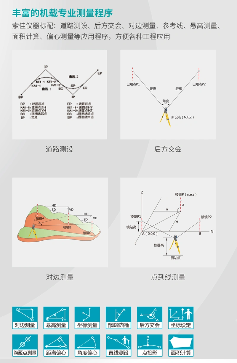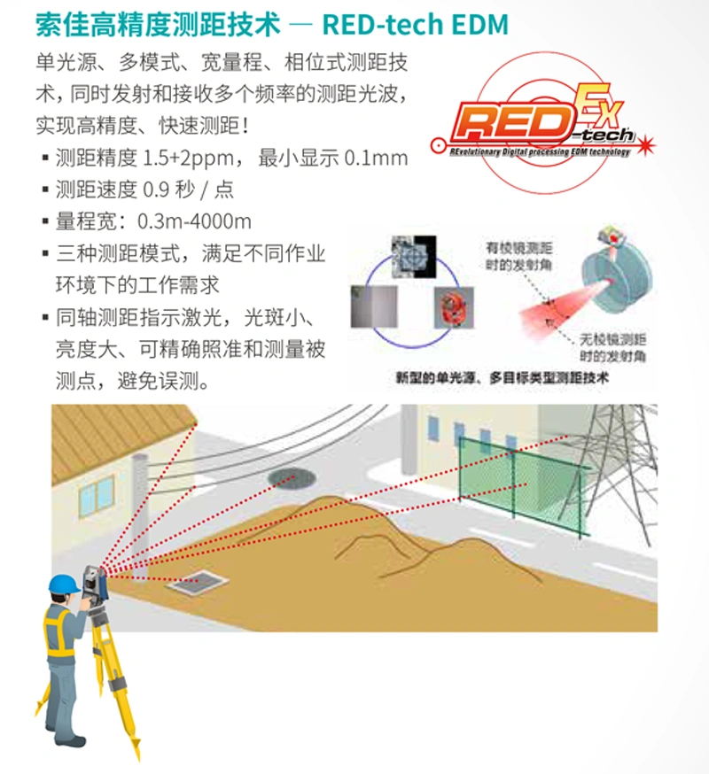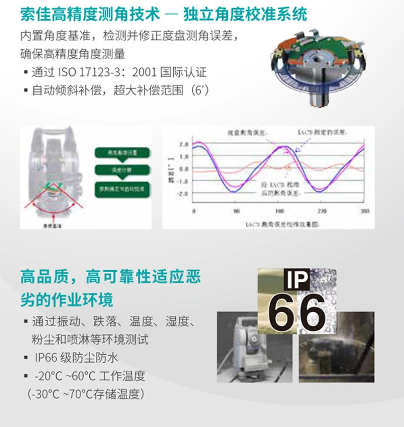 索佳高精度测角技术一独立角度校准系统,内置角度基准,检测并修正度盘测角误差,确保高精度角度测量: